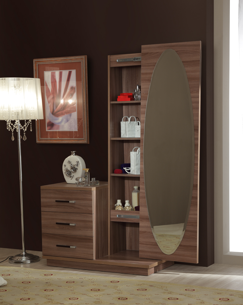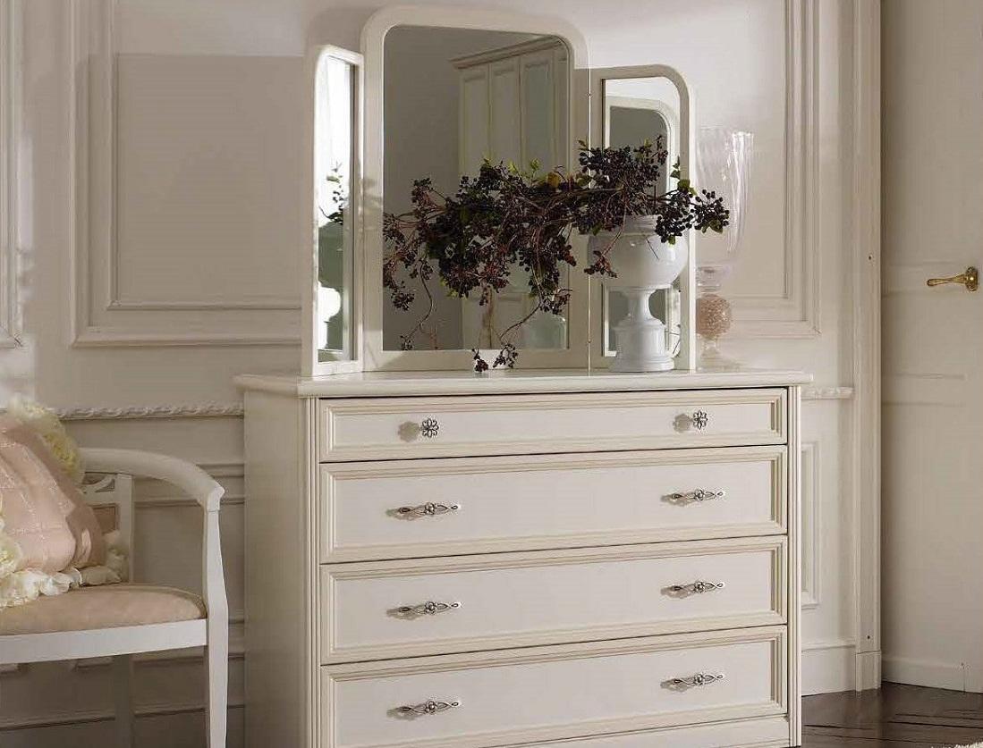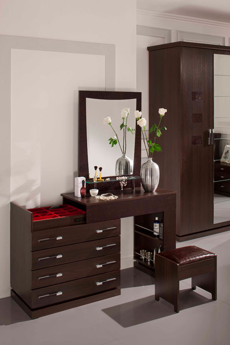 A dressing table with a mirror will make getting ready more comfortable before leaving the house. Having placed on a chair or stool, you can evaluate the appearance, fix hair, make-up, clothes and go on business with complete confidence. The dresser is manned with a large number of boxes and compartments, which are sure to be useful for the practical storage of various household items and other trifles.
