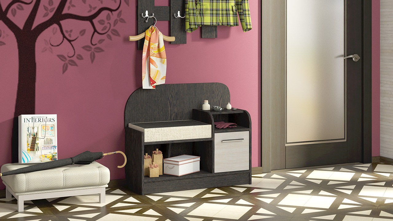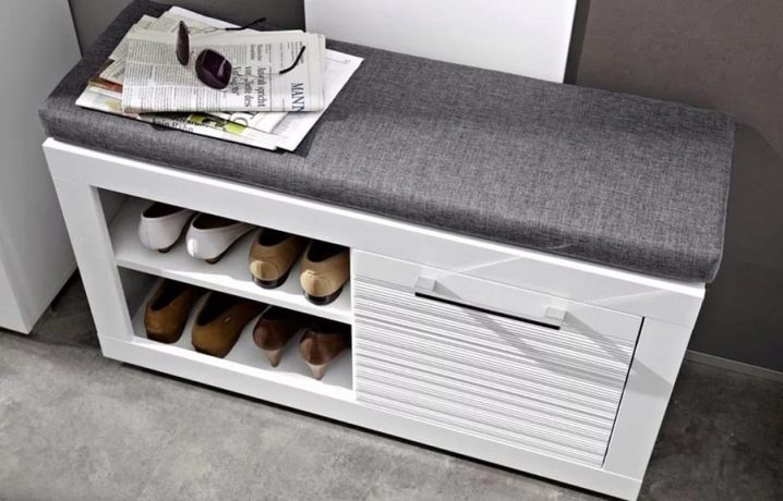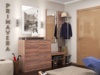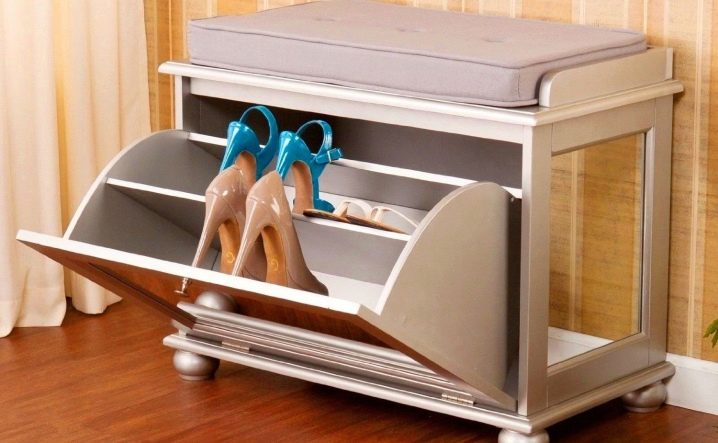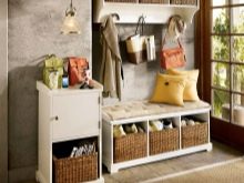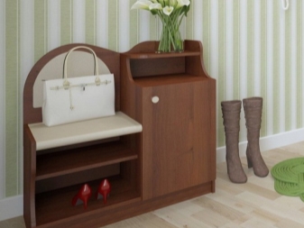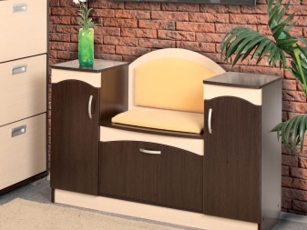The curbstone is most often intended for shoes, so that it does not randomly stand at the very exit. The upper part of the furniture, especially for high models, or some of its shelves are relegated to small things: keys, sunglasses, gloves, and cosmetics.Other options for thumbs are also adapted for storing outer clothing or equipped with holders for umbrellas.