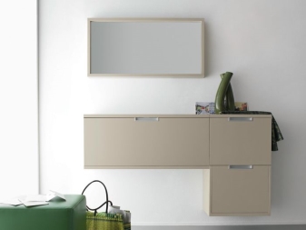 Another common model is a cabinet with a mirror. This is a practical and ergonomic option, as it saves space in the hallway and allows you to comfortably clean up. Most often attached to the cabinet attached mirror mounted, but it can also be a product to the floor.