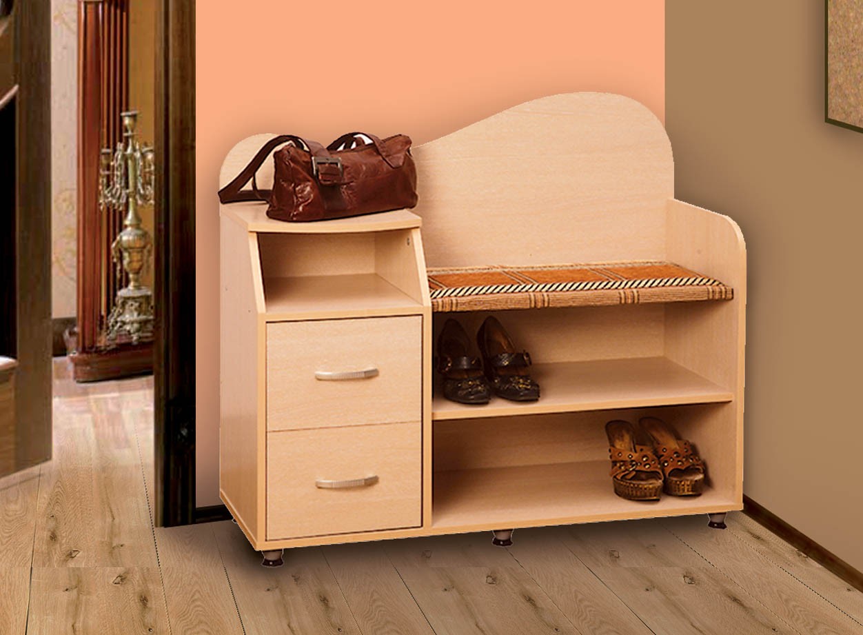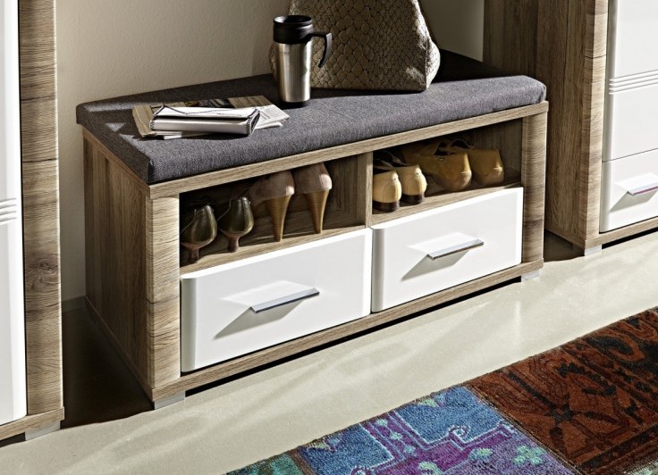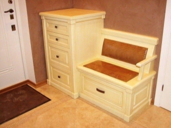 Thus, there is a place where it is convenient to change one's shoes while sitting. One piece of furniture performs two functions at once and saves space in the hallway.