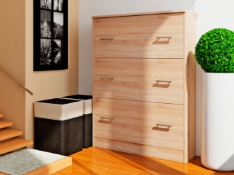 When buying this product, you should consider in advance the number of people living in the apartment, and the number of shoes and clothing.It is necessary to calculate the free space in the hallway, especially if it is small. Even narrow and low cabinets attract enough attention, so they should be combined with the overall interior.