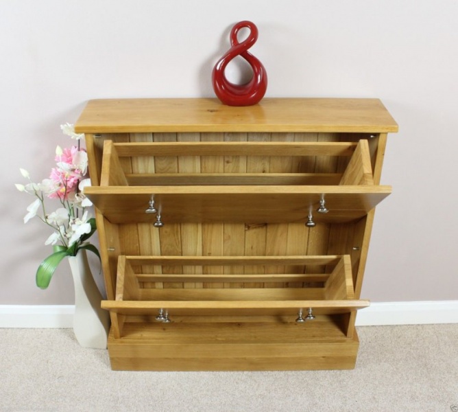 Closed chests are often more open because they are designed to store not only shoes, but also, for example, care products. Such models can have both hinged doors and drawers. Branches are the same size or are divided into unequal compartments.