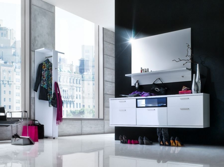 Light tone cabinets can visually enlarge the space, which is especially useful in narrow hallways. To enhance the effect, you must select a model with a glossy surface. Dark furniture is more classic, balanced and unpretentious.