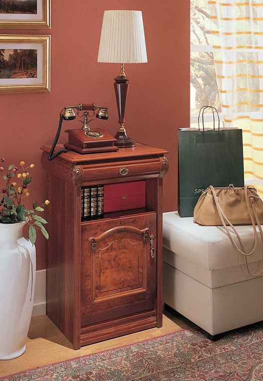 In addition to practical functions, the bollard can perform decorative. The furniture itself is often an ornament, thanks to the beautiful finish. Also on it you can put souvenirs, vases of flowers, photo frames, jewelry boxes.