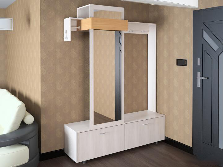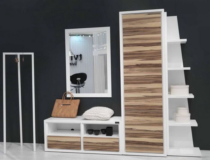 - Another manufacturer that offers large modular kits - “Furniture factory NAYA. Headsets consist of pedestals of various sizes, cabinets, hangers and mirrors. Furniture made of wood-based panels processed under the tree, imitating such species as oak, walnut and ash. The design is concise, so that the headset will fit into many interiors. Prices start at ten thousand rubles.