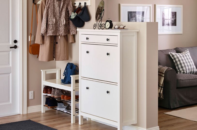 - One of the most popular and affordable manufacturers - furniture hypermarket Ikea. In their catalog you can find both narrow and open shelves for shoes, as well as tall galoshnits with several compartments. There is an opportunity to choose a more suitable color and, sometimes, a complete set - types of shelves and their contents.