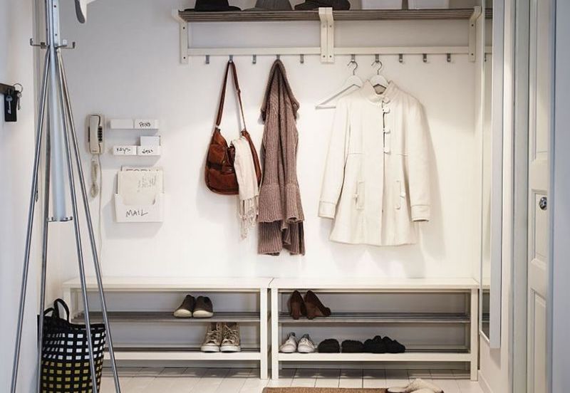 The advantages of an open view include the quick drying of shoes and their airing, but in this case, boots and shoes are not protected from dust. Another drawback is the appearance of the contents of the shelves.