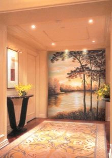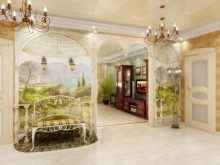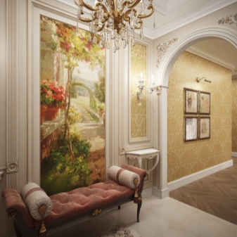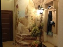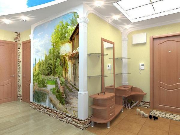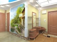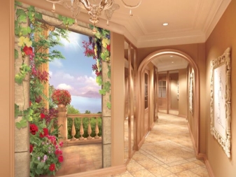 Even a small hallway requires proper clearance. The harmony of the pattern combination with the texture and complexity of the interior decor is important. The subject of the image should not be capricious: it is better if it is an accent both positive and comfort.