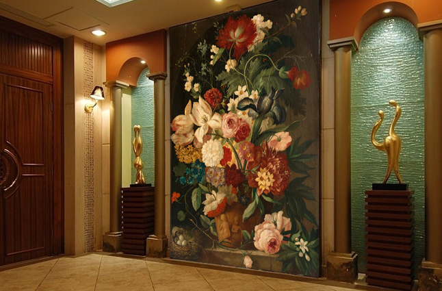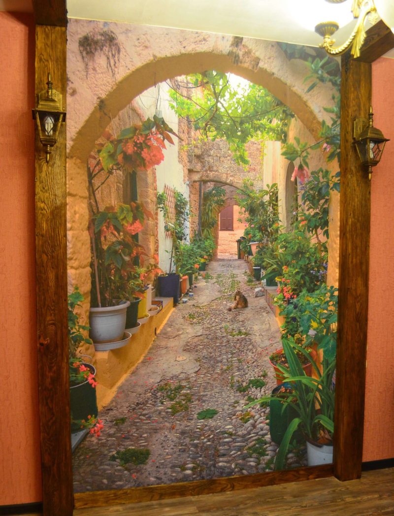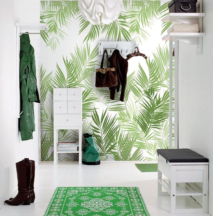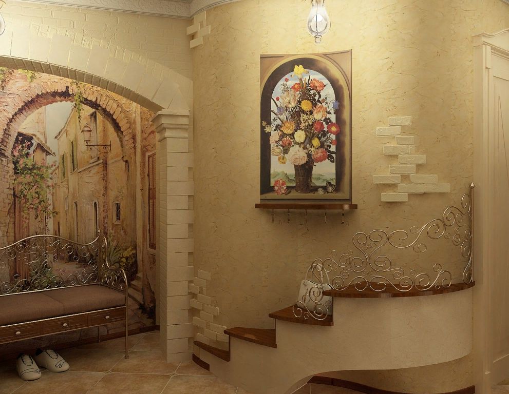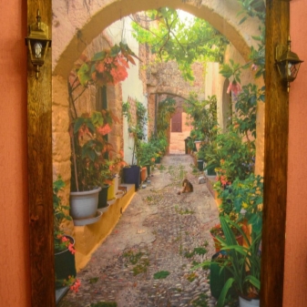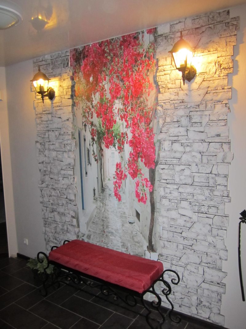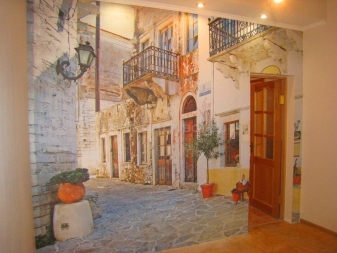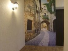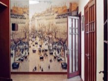 If the drawing allows, it is worth decorating the wallpapers with various decorative elements, thereby making the canvas voluminous.Using this technique, you can make the picture functional: if you stick a lantern and a hook, the space will be a zone for placing outerwear, an umbrella, a bag. Wall mural has a lot of possibilities for design, but without taking into account the rules of location can spoil the intended composition of the interior.