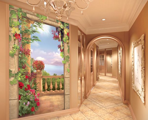 Wall murals are a popular design trick. With their help, you can interesting and original beat any idea of interior design. This is especially true of the hallway: due to the variety of beautiful images and an extensive range of tones used, this method of decorating the room allows a sea of spectacular compositions. Wall murals for the hallway have their own nuances, the accounting of which is important and helps to create a harmonious, cozy atmosphere.
