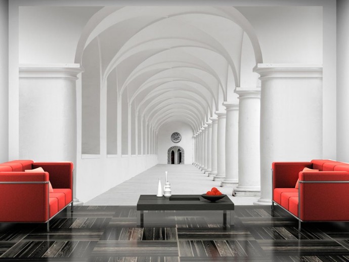 - photo wallpaper depicting perspective or tilt glue in front of the entrance to the hallway, otherwise you can spoil the aesthetic perception of the room;