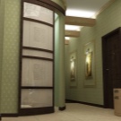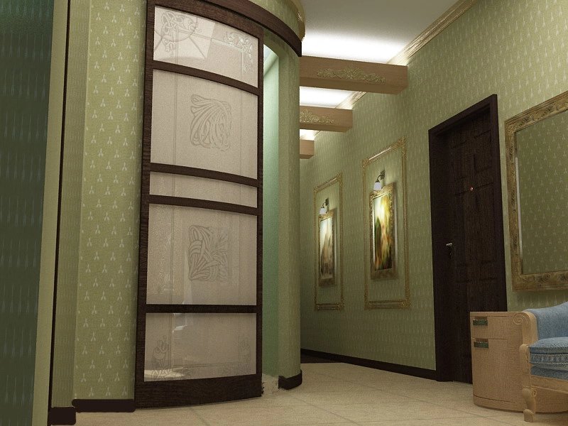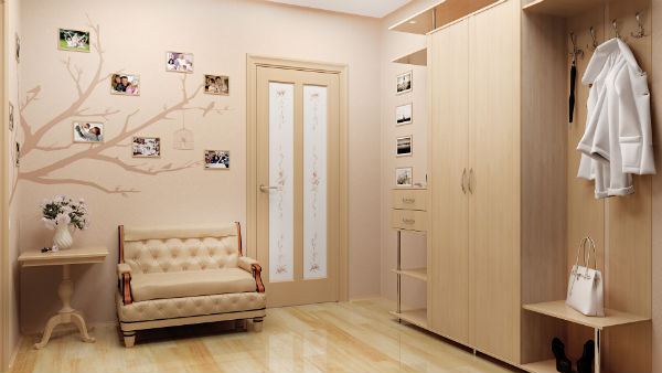 It is better to glue the wall next to the door with wallpaper several shades darker. This is beneficial from a practical point of view. Visually expand the volume will help wallpaper with the effect of the projection or decorated with a small pattern.