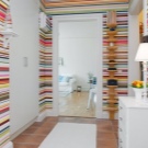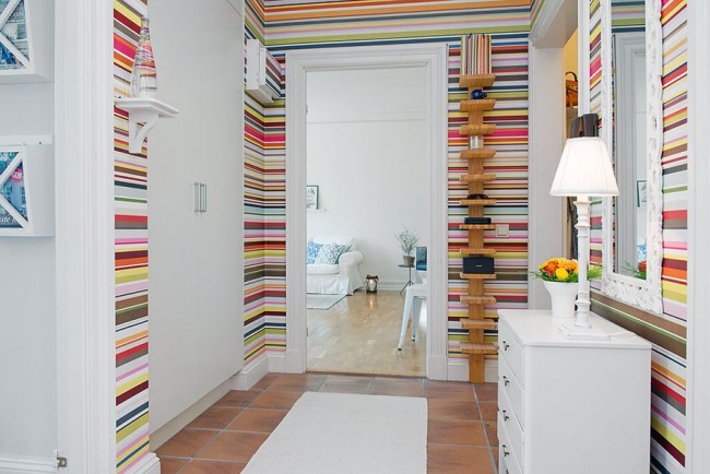 - Stripes. Wallpaper in a vertical or horizontal strip is used to visually change the scale of the territory. To make the ceiling higher, vertical options will do, and to make the walls wider - horizontal. Bright colors are suitable for modern stylistics.