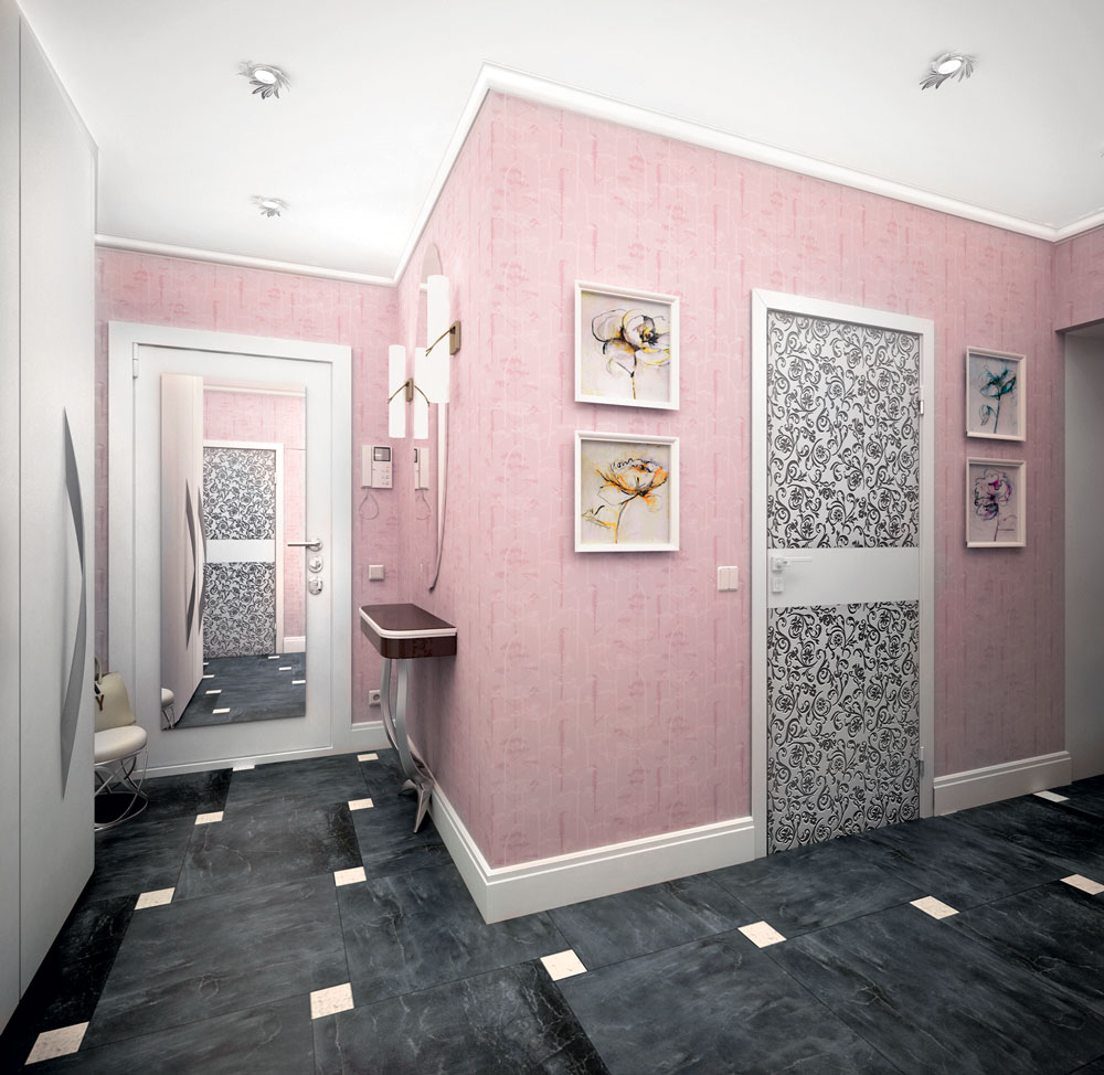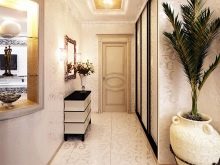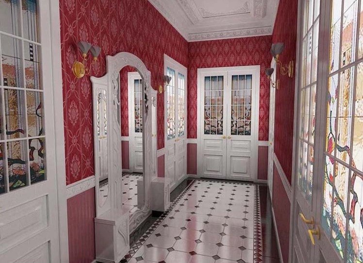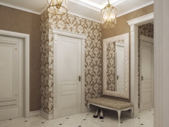 - Classic. Despite the fact that bright shades took the lead in the season, classic and soft tones do not lose their relevance. A palette of white and various light and soft colors is the best solution for small hallways. To keep up with fashion trends, experts recommend choosing options that are decorated with patterns and stylish prints.
