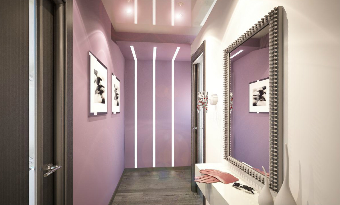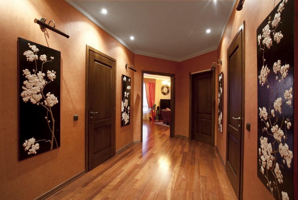 There are a number of colors that are recommended for use when decorating a narrow hallway, especially if there is a lack of lighting in this area. Pink, yellow, peach or beige wallpapers are perfect here.