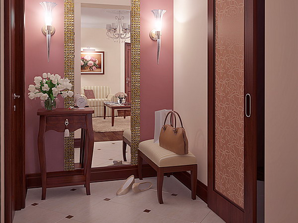 Dark and thick paints are often chosen when decorating hallways in classic styles. Such colors will be appropriate to look, if this zone has sufficient size. With a standard layout, the hallway is the darkest place in the apartment. The walls, framed by dark wallpaper, will narrow the already limited space. In order to be comfortable in this area, take care of a sufficient amount of artificial light.