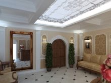 The hall, which is used as a reception room, needs to be equipped with a seating area: it will be nice to install chairs, sofas, and small tables for a comfortable pastime.