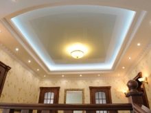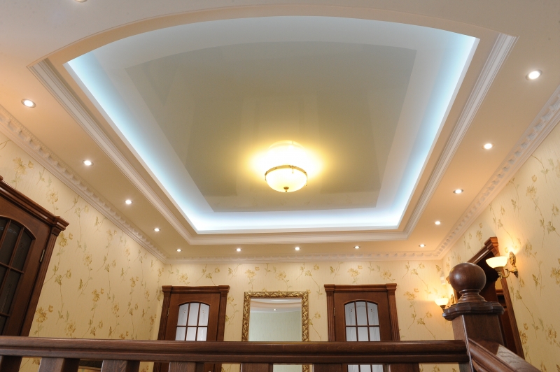 Ceilings can be performed in one level or in several. Multilevel ceilings are made either from gypsum board, or using the technology of stretch ceilings. And those and others have their advantages. Stretch ceilings are easy to maintain. Drywall allows you to give vent to fantasy and create quite complex surface reliefs. This material can be the basis for the decoration of the ceiling with different materials: stone, tile, stucco.Painting and gilding fit well on such a surface.