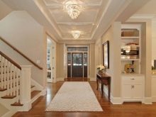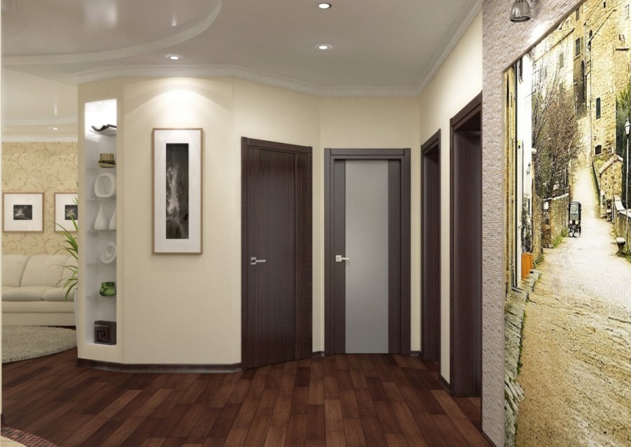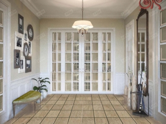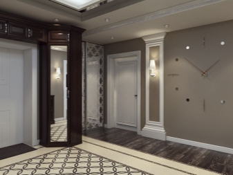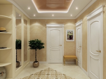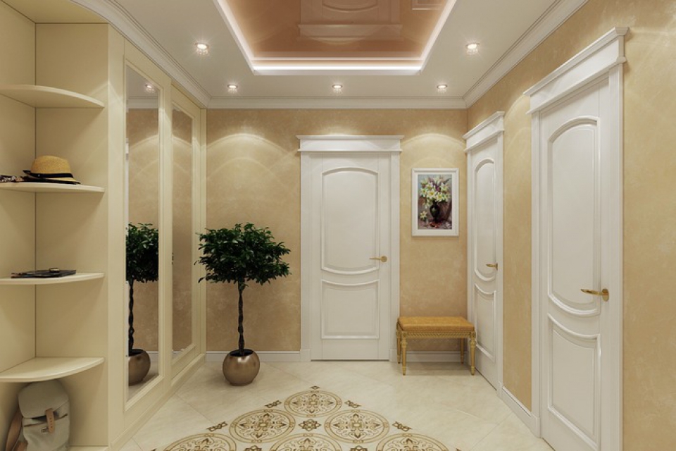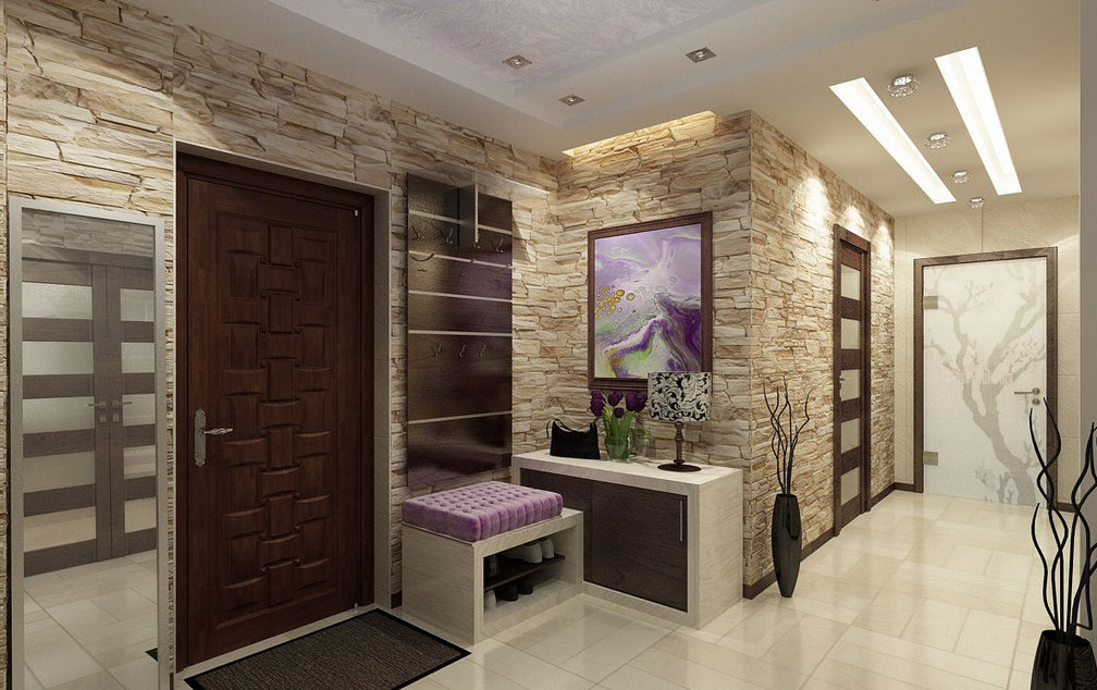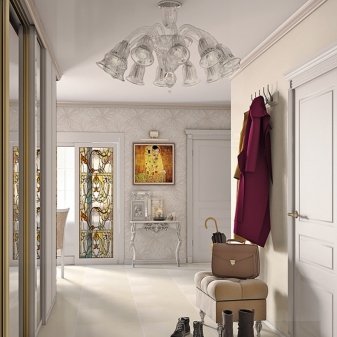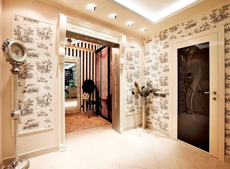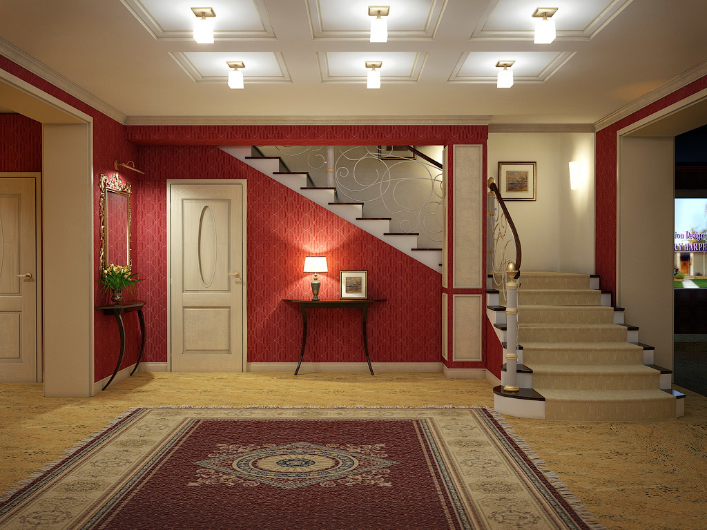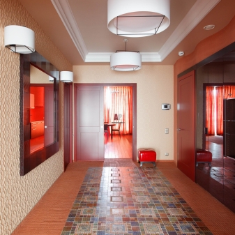 Doors from other rooms may enter the hall, a staircase may be present, therefore it is better to use no more than two colors, otherwise the room will be visually broken into fragments.
