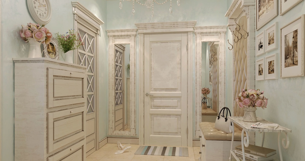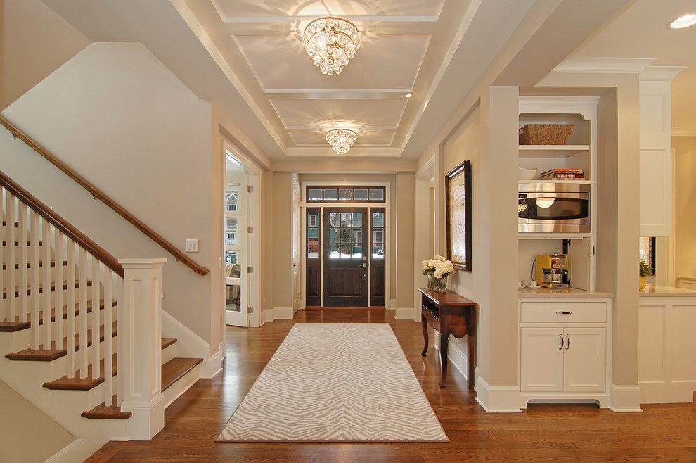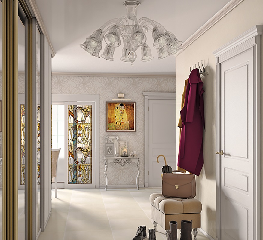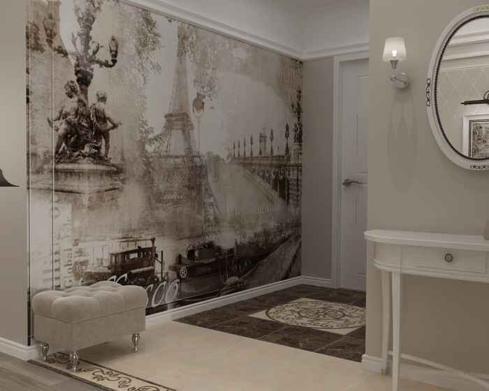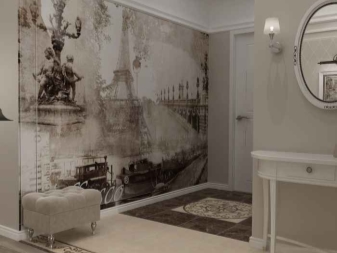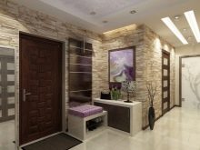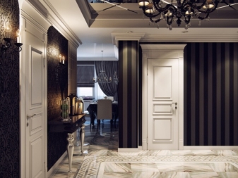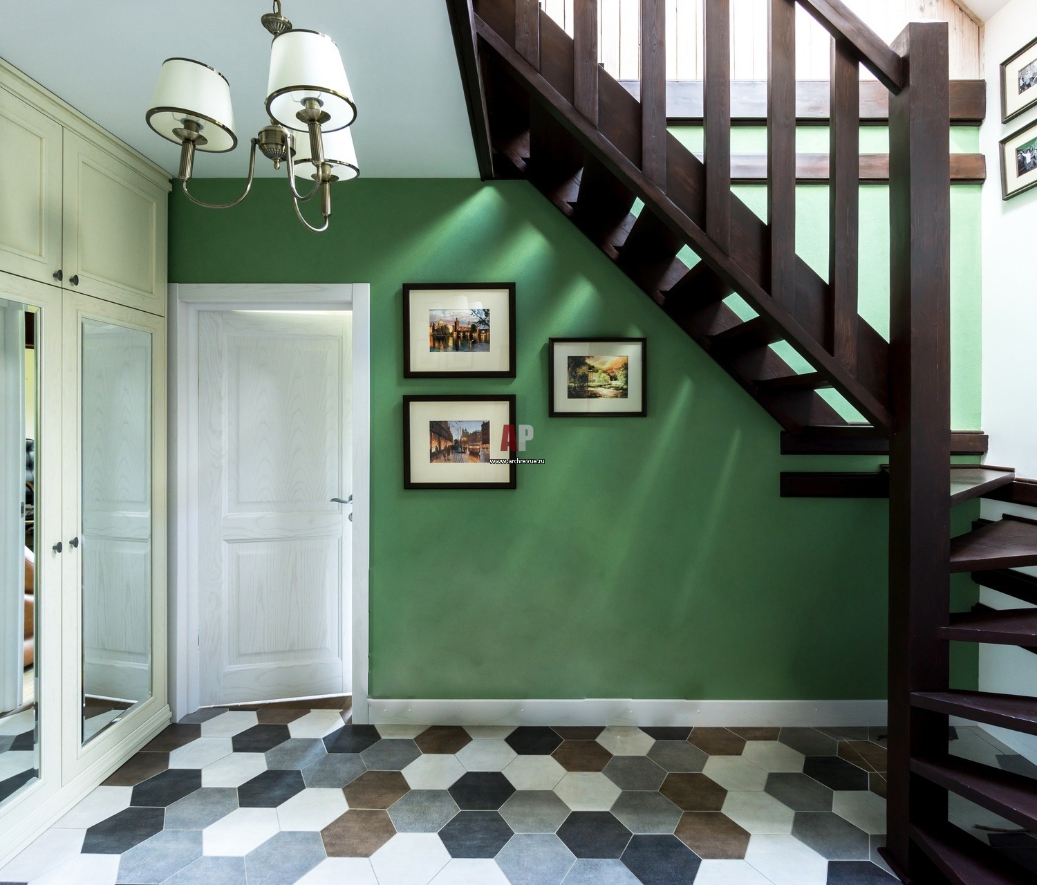 Doors from other rooms may enter the hall, a staircase may be present, therefore it is better to use no more than two colors, otherwise the room will be visually broken into fragments.