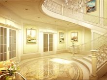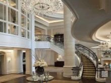 In big houses there are big rooms. Initially, guests and owners of the cottage or mansion fall into the hall. The first impression from the decoration of the house will create this very room, that is why it is so important to take into account the peculiarities of a large space and competently develop a design.
