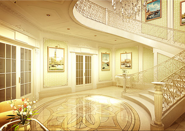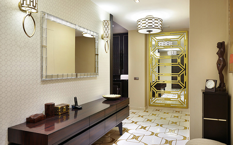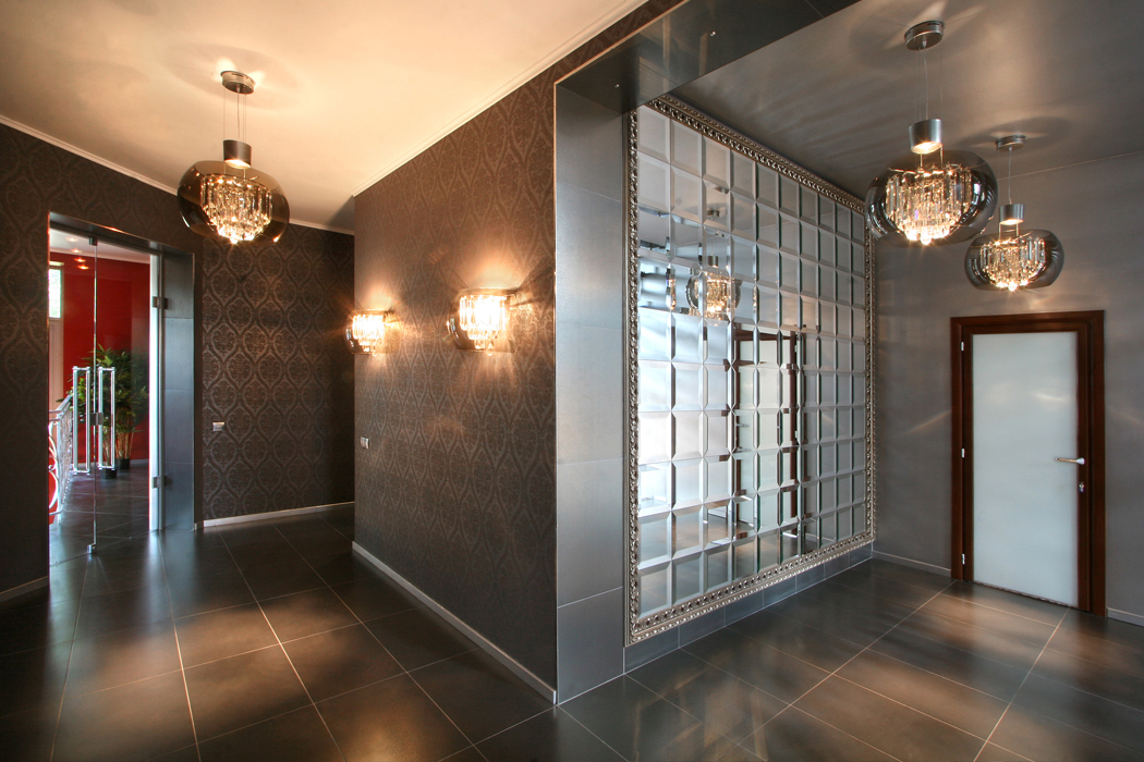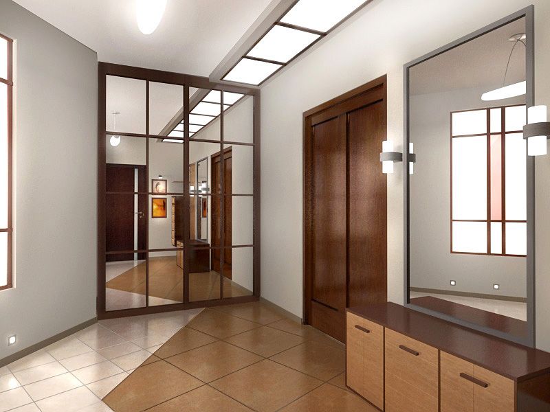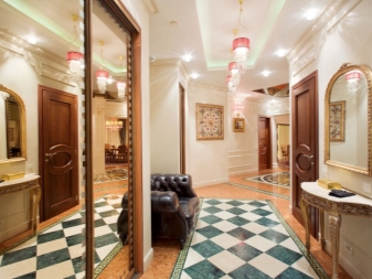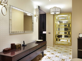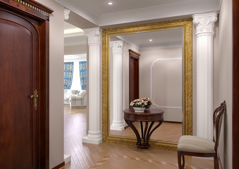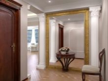 Placement of mirrors gives completeness to the room. This is necessary for the convenience of visitors and is used to create additional, reflected space. Mirrors should be well lit with natural or artificial light. The mirror can be one or several identical, located in a symmetric order. In the hall it should not be small. Often, large mirrors are placed on the first flight of stairs, visible from the front door - this creates the effect of infinity in space and adds grandeur to the room.