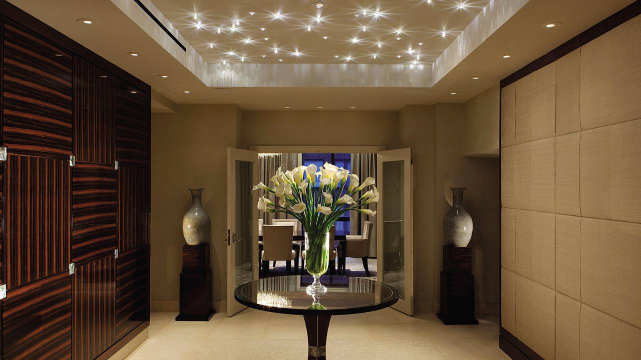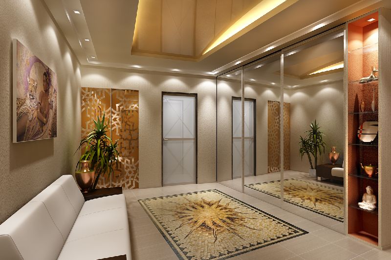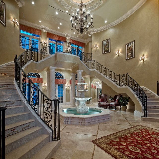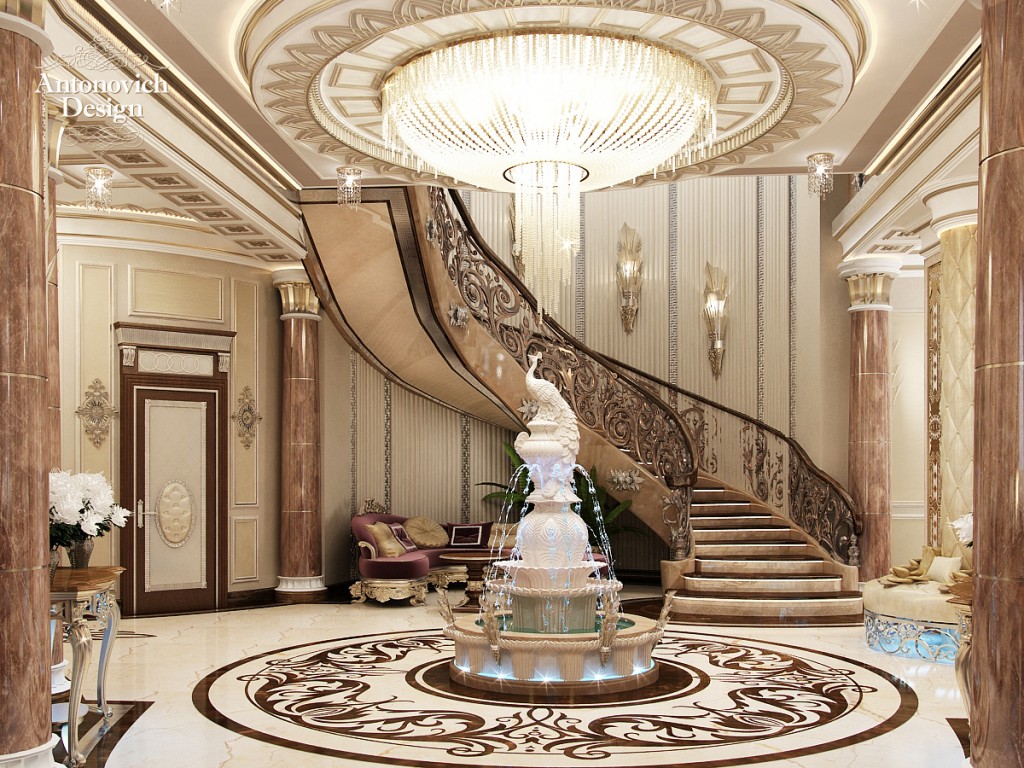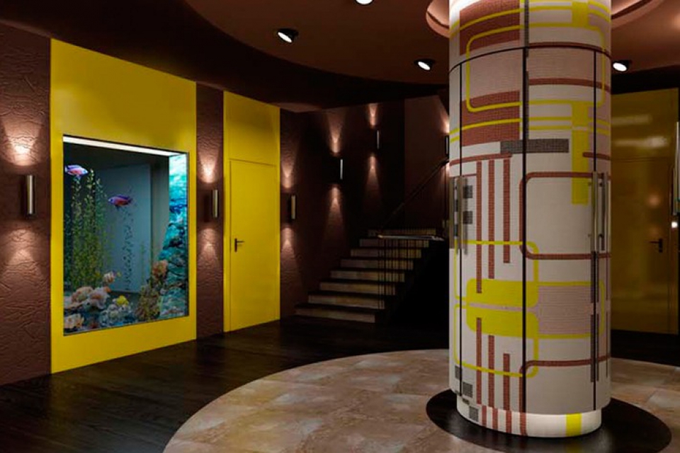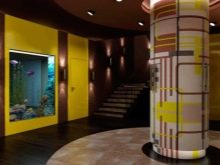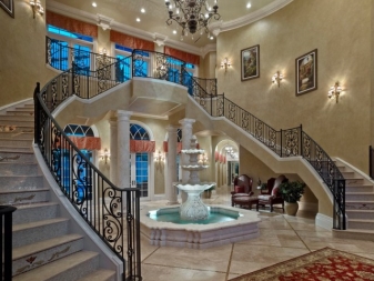 Often, a decorative fountain is installed in the hall, its murmur refreshes and pacifies. You can choose any style of the fountain: from the luxurious baroque to the hard lines of minimalism.
