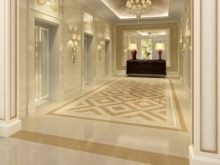 True luxury in the interior will bring use natural stone - granite, marble and other rocks, but the cost of this type of flooring is the highest.