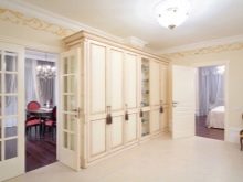 The decor and interior decoration of the hall depend on the purpose of this room in the house. If in the hall you need to create storage space, then fit built-in wardrobes with sliding doors. Cabinets are desirable to withstand in the color of the walls, then they will not look like independent furniture, but will become part of the common space. If the hall is narrow, then it is desirable to install doors on the mirror cabinets, this will visually widen the distance between the walls.