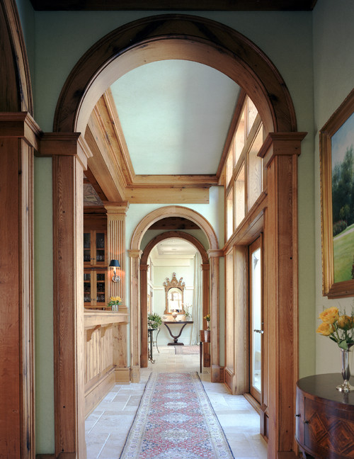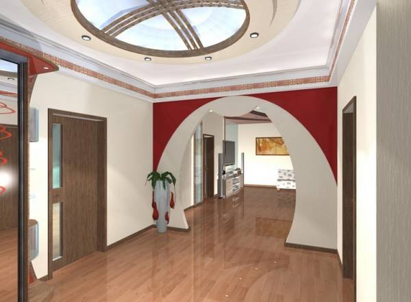A hall in a multi-room apartment can advantageously open up new spaces, thanks to a cascade of arches, and thus bring it into the living room, dining room or recreation room.