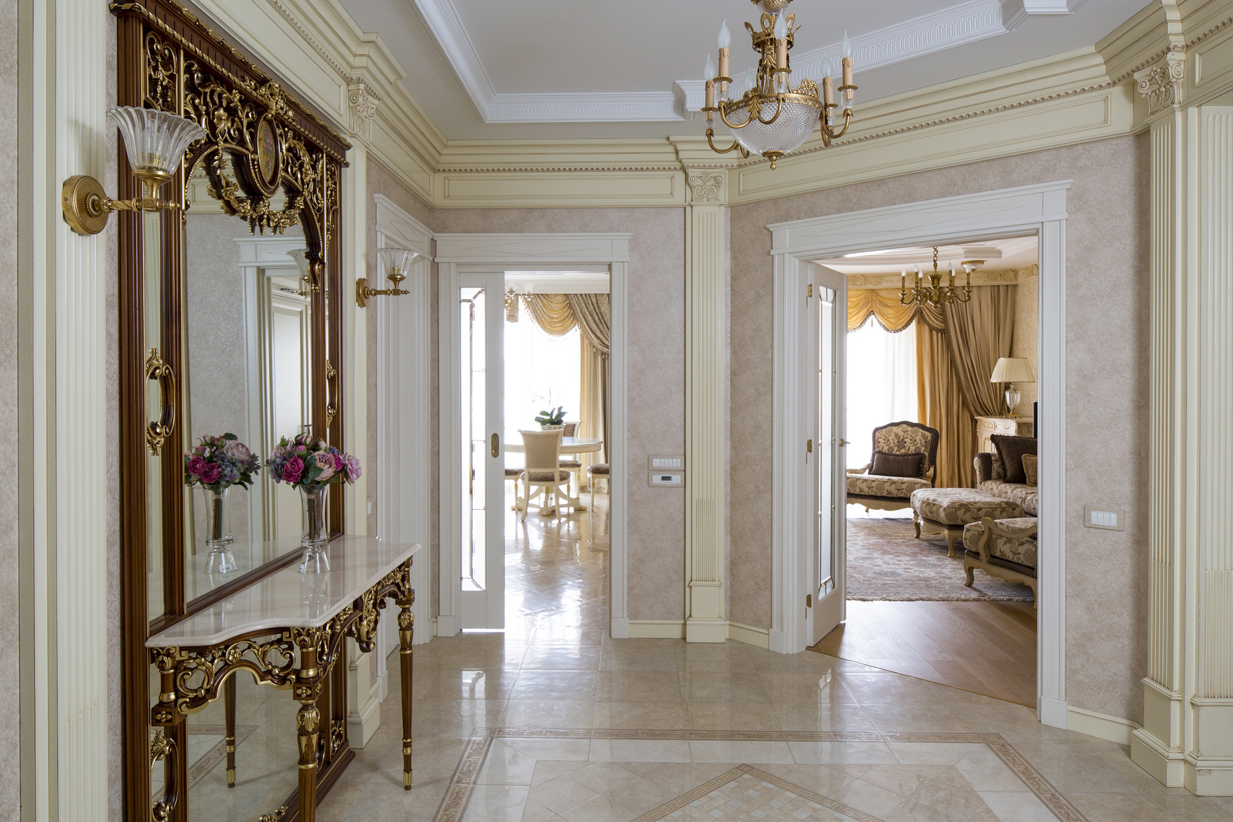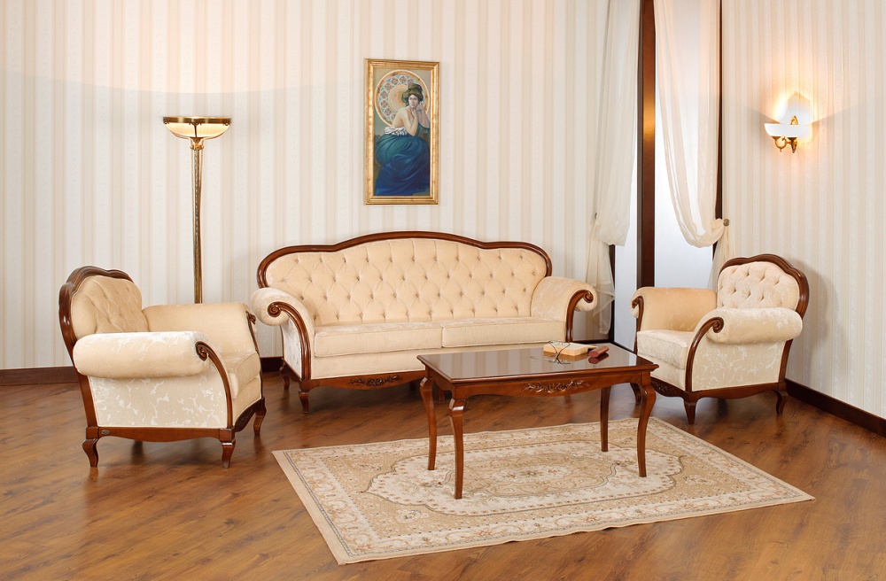 - Luxurious furniture inlaid or carved, upholstered in velvet, gilded walls and ceilings on ceiling moldings, paintings in gilded frames, mirrors, predominance of white or red colors are symbols of classical styles Baroque, Empire, Art Nouveau, Gothic. These are the so-called palace styles. Here we need large areas, good room prospects and a small amount of furniture made of natural wood.