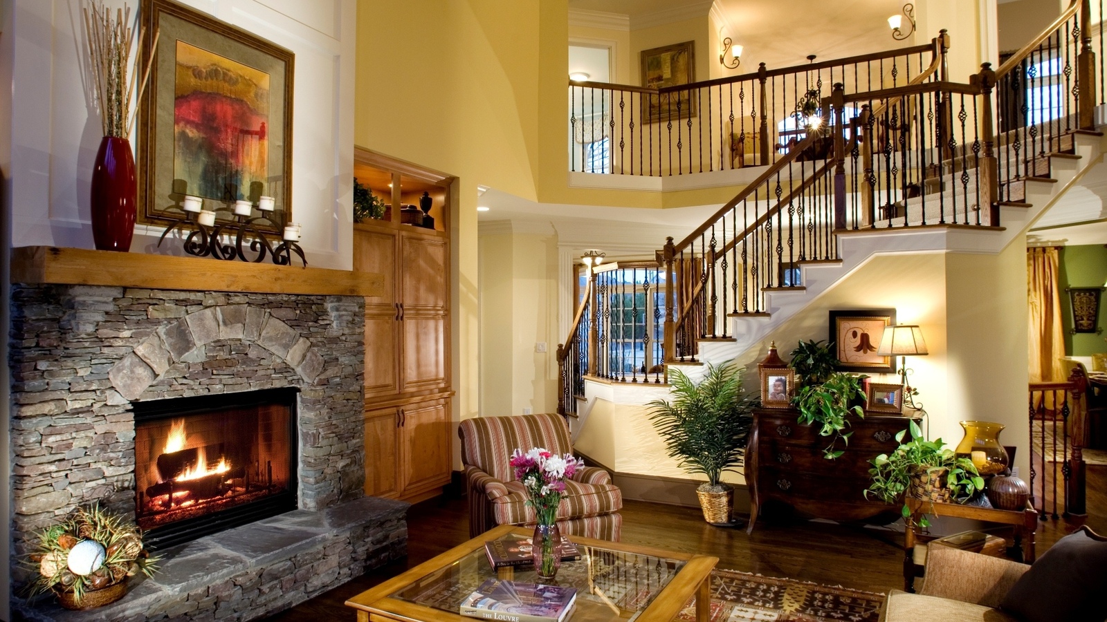 The fireplace with artificial or live fire will greatly decorate the interior, it will give warmth and comfort, especially if you get into the room in cold weather.A fireplace can become a central piece of interior, and it is important to use such finishing materials that will match the design of the house.