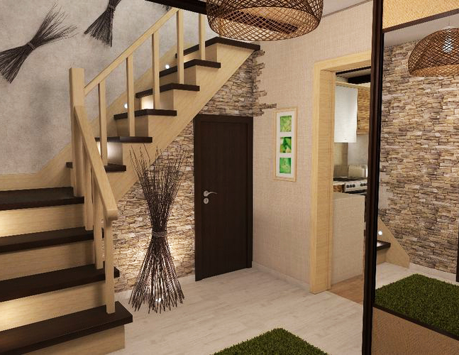 This often goes the stairs leading to the top floor.This is a special part of the home, which performs many functions and requires a specific design solution.