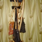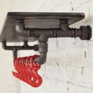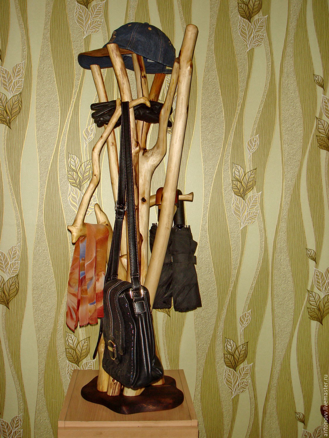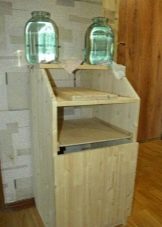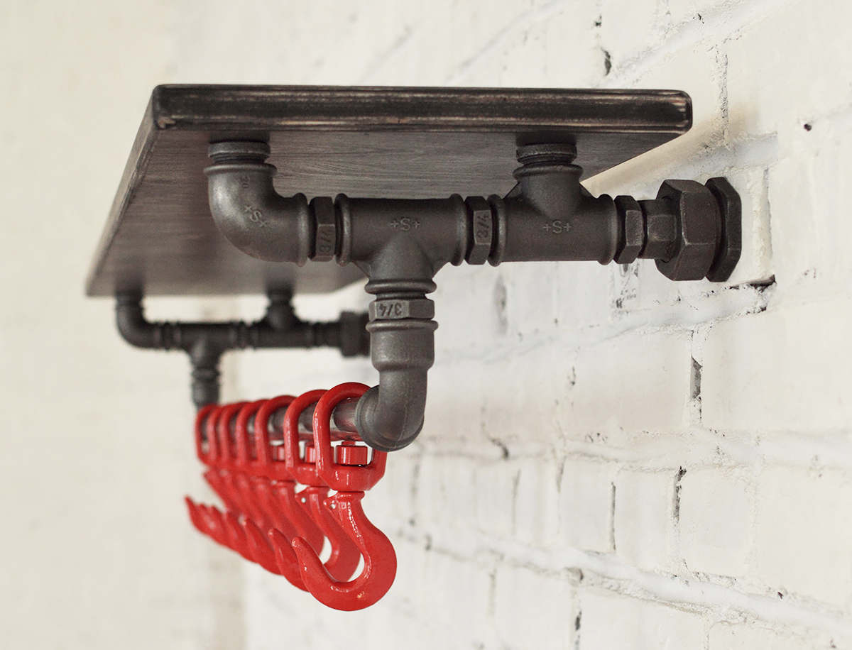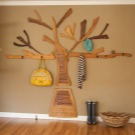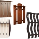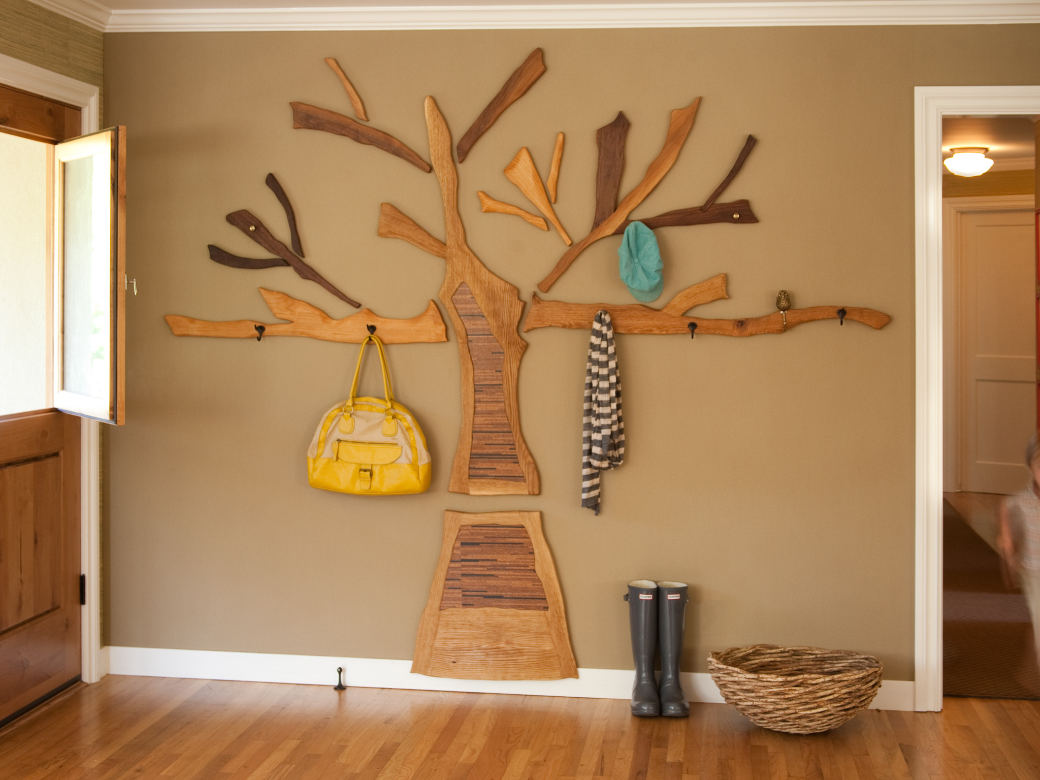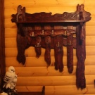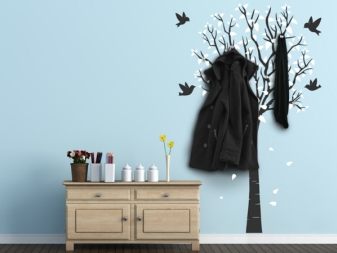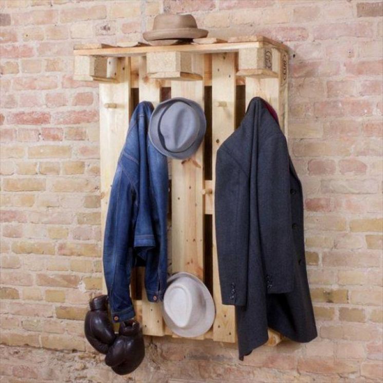 In addition to the cabinet and cabinets, you can make a wall hanger with hooks. To do this, it is enough to cut the required size from the shield, or a few narrow boards,which are interconnected by another transverse board. Vertical boards can be made curly by adding elements of contrasting color. The hanger is completed with hooks and the top shelf.