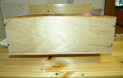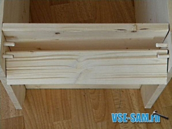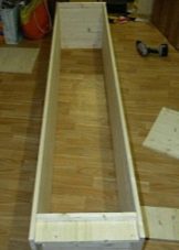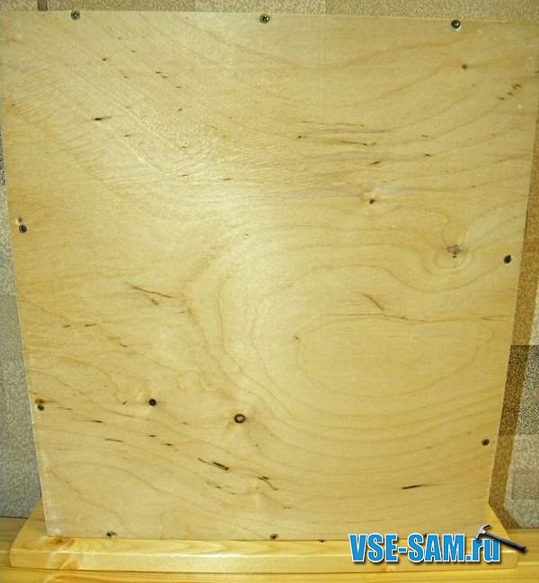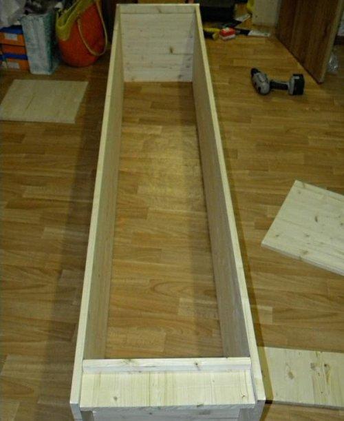 - we make a box of furniture board. Bottom can be cut out of plywood. The front part should be slightly higher than the other parts so that the contents of the box are closed. We fasten the details of the box with screws;