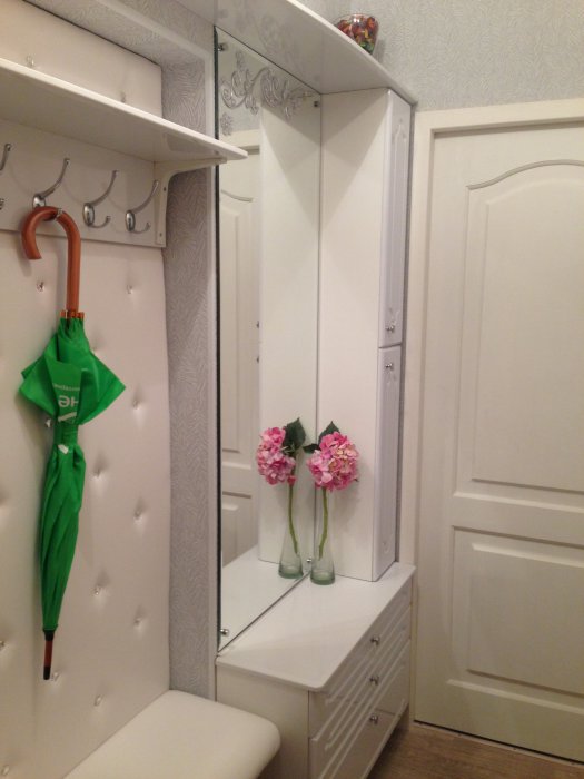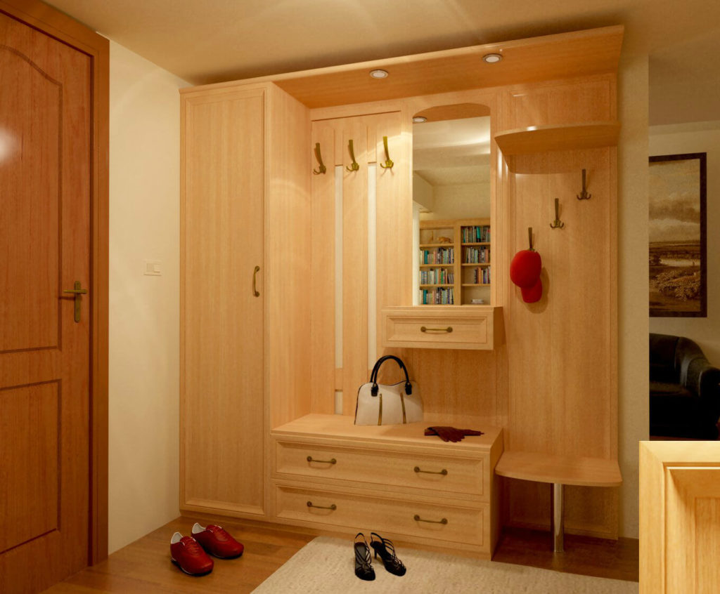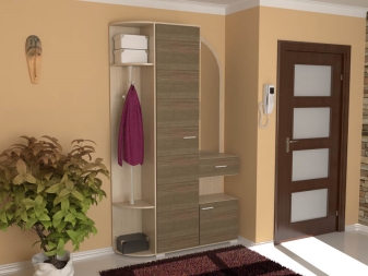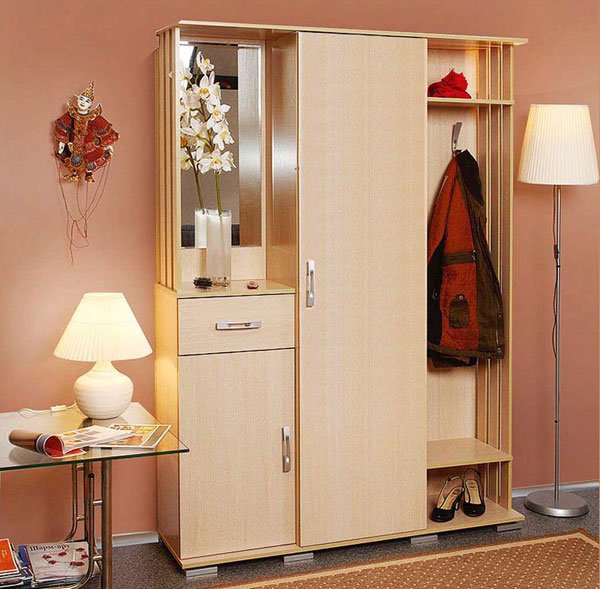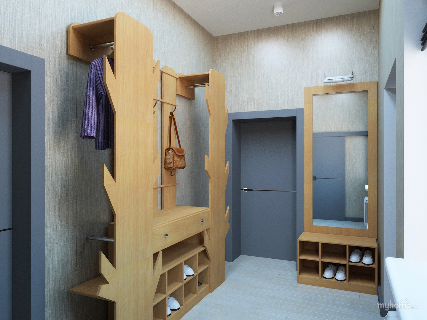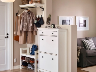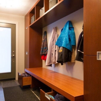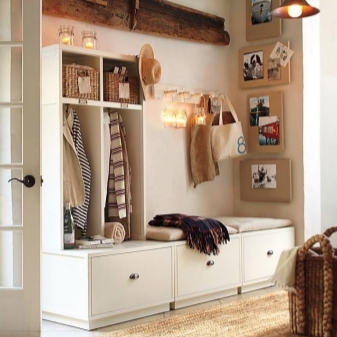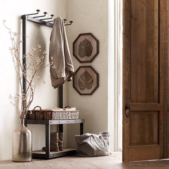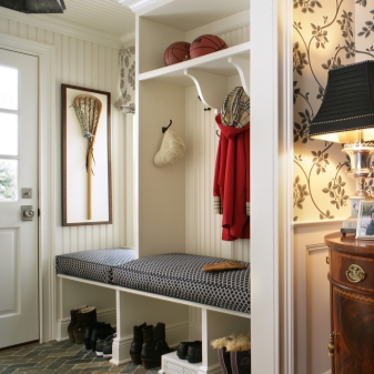 The most inconvenient option is small space.In it you need to fit everything you need, but not to overload the entire room with furniture. In this case, a mini hallway is suitable. You can use a wall hanger for clothes, vertical designs for shoes, a small padded stool as a seat, and a small shelf for small items. An excellent storage solution will be mezzanines that are fixed to the ceiling.