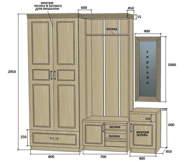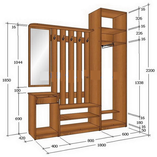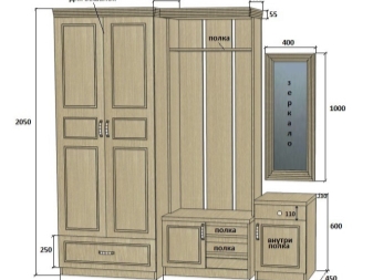 Before you get started, It is necessary to determine the desired model and size of the future furniture. It is better to push off from the dimensions of the room in which it will be. Do not use all the space to the maximum. If the room is small, then the furniture should be a bit. You can limit the standard set of compartments for jackets and coats, shoes and various small things.
