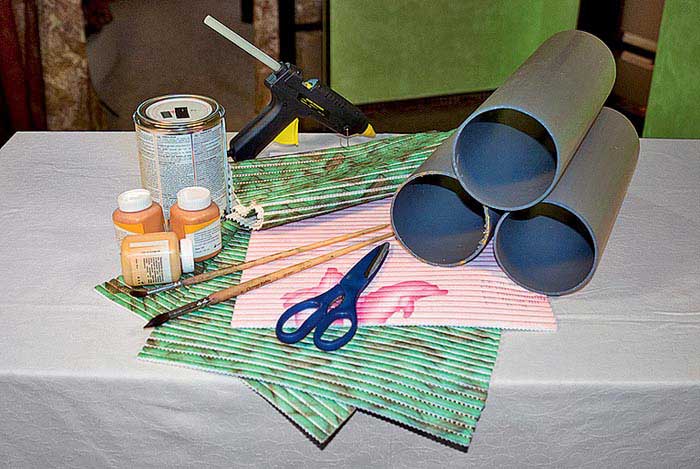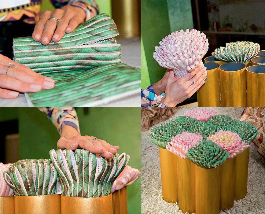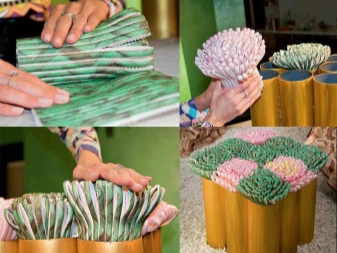 Similar is the design of plumbing pipes. They are cut to the same length and bonded together to the desired frame with glue. To give them a neat shape, it is better to close them with corrugated cardboard or plywood. Inside the pipe, it is better to fill it with dense material to prevent the finished product from deforming. For this fit an old rug or thick fabric. Outside, the product can be painted or upholstered with a cloth.