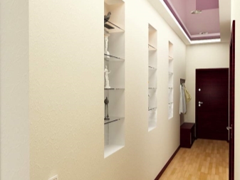 As the drawbacks of drywall can be mentioned the low strength of the material. It is subject to deformations under the influence of moisture and external mechanical effects. In addition, the construction itself with profiles takes up space, so it is better to build such a hallway or dressing room in spacious rooms.