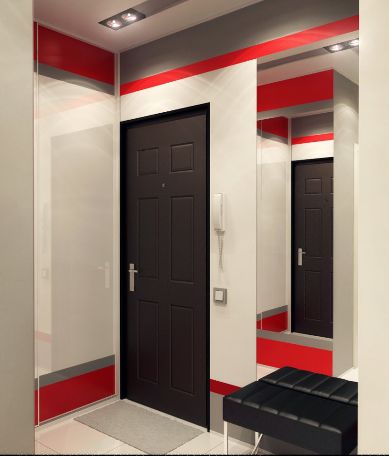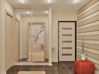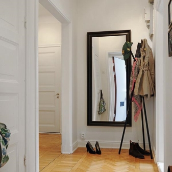 For the same purpose, the hall must be with a mirror, and the more mirrors the better. They will help to visually enlarge the room.