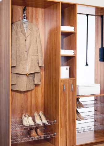 A large cabinet is made in a similar way. If you plan to store clothes in it, you need to think about its depth so that the hangers can fit. If the space does not allow you to make furniture of sufficient depth, then for this you can choose the end hang, which is suitable for shallow cabinets.