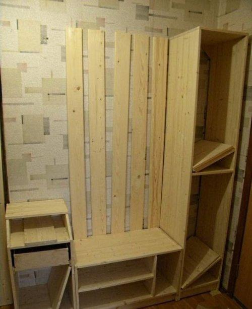 - The best option for working with wood are furniture boards They have already been prepared in a special way, so that all they have to do is just to cut out the necessary parts and start making the hallway.