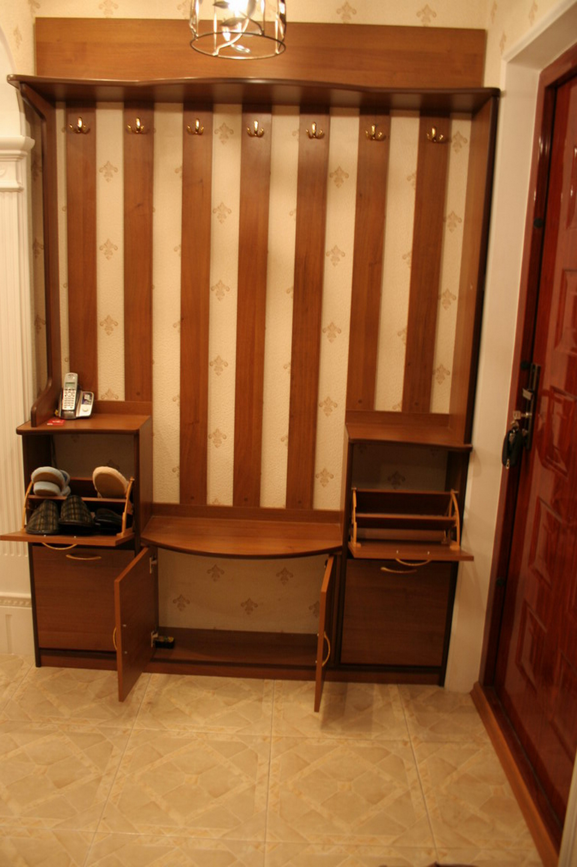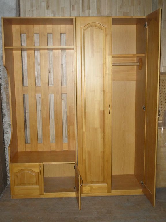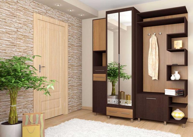 In modern hallways you can arrange a variety of designs from both cheap plywood or laminated chipboard, and natural wood. The main thing is to follow the rule: do not clutter up small spaces and do not leave them empty - big ones. It is recommended to choose designs of lighter shades.