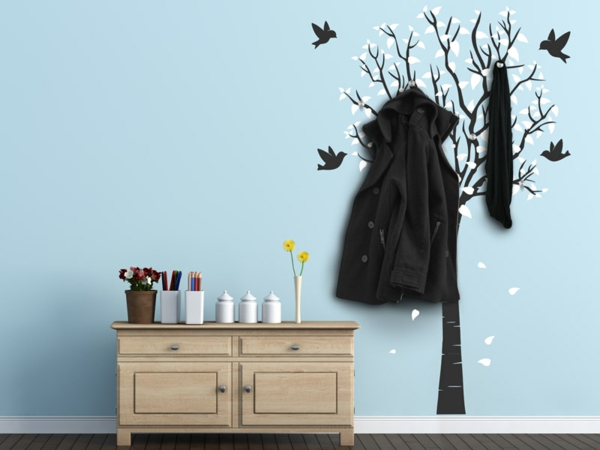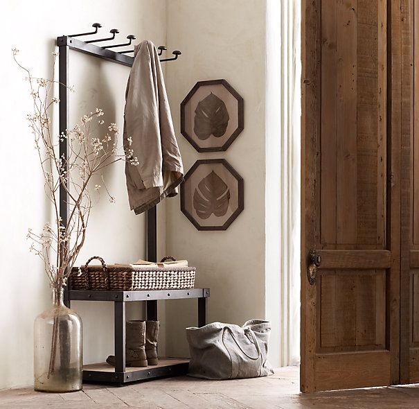 - As an additional item, you can add an original hat, an interesting shoe holder, a large plant in an outdoor pot or several pots of flowers placed in pots on the walls;