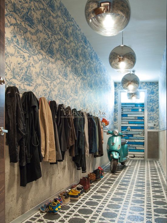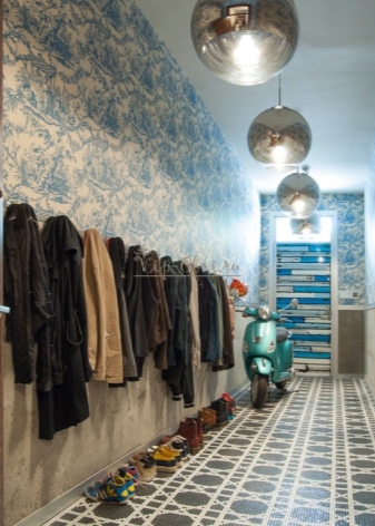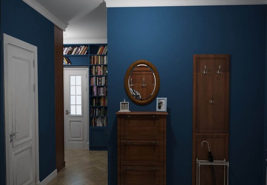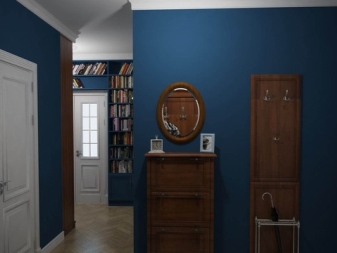 - If you want a hallway in blue tones, this finish will be more demanding. The most interesting will look furniture from light and mahogany, but dark cabinets can make the interior too gloomy.