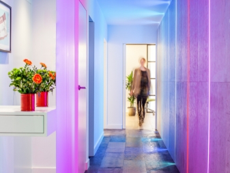 - If you want to divide the hallway into zones using light, this will help two sources of illumination - the main and additional.