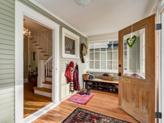 The vestibule is a frequent option. This layout implies that the entrance hall is fenced off from the rest of the house by a separate door and does not lead directly into the rooms. In this case, its design can be made more interesting and detached.It is not necessary to choose the color of furniture and walls to the very same under the other rooms.