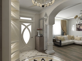 The classical hall means a small space that leads into several rooms at once. It is important that the design of the corridor is different, and the space is demarcated. However, there should be no cardinal dissonance between the decor of the hallway and the living rooms. Most often, they make a common finish and choose furniture in the same style, but the colors and accessories can vary significantly.