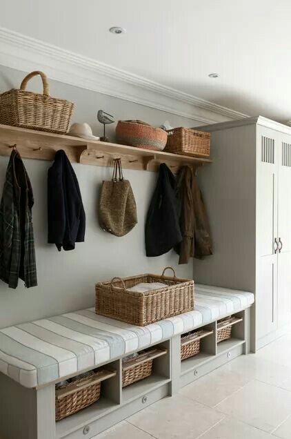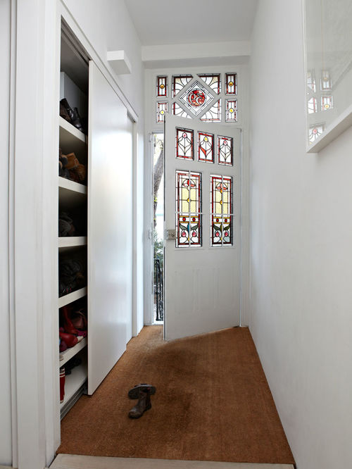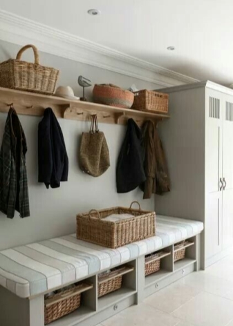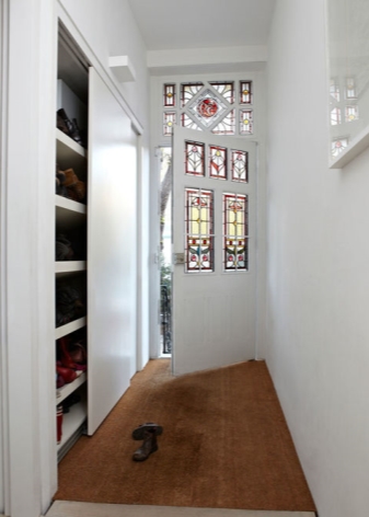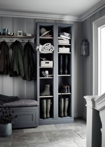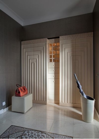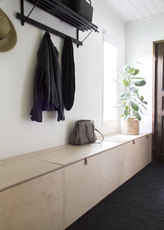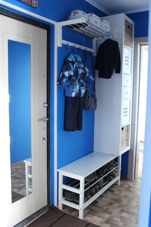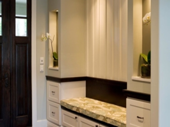 - Often in the corridor put an additional open shelf for shoes - this is typical for medium and large spaces.