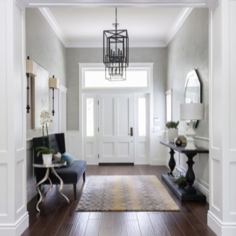 A little more complicated and interesting, you can make the interior hallway of medium or large size. In such a space, you can add a lot of interesting small details, create an atmosphere in a classic style or make an original eclectic interior. The width of the hallway also matters. If you have a long narrow space, it is difficult to call it spacious. If the house has a square or rectangular large entrance hall, you may be interested in the following ideas: